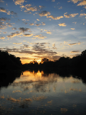 Die Bootsfahrten im Pantanal sind faszinierend: die Weite des Gewässers, die Ruhe, die Natur, die Vielseitigkeit der Tierwelt, die Geräuschkulisse und, und, und... Bei Sonnenaufgang sind die Bootsfahrten einfach atemberaubend.