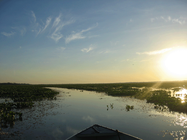 Die Bootsfahrten im Pantanal sind faszinierend: die Weite des Gewässers, die Ruhe, die Natur, die Vielseitigkeit der Tierwelt, die Geräuschkulisse und, und, und... Bei Sonnenaufgang sind die Bootsfahrten einfach atemberaubend.